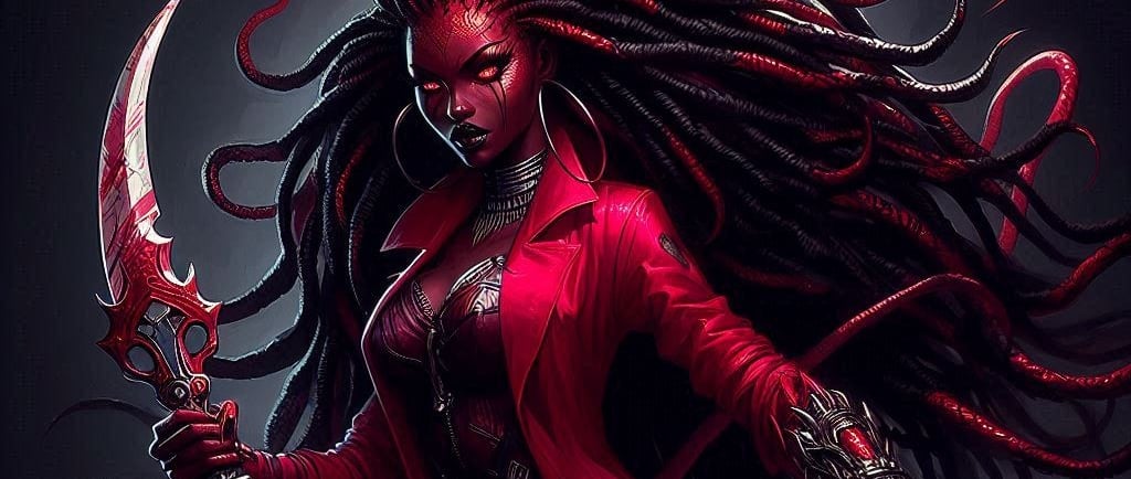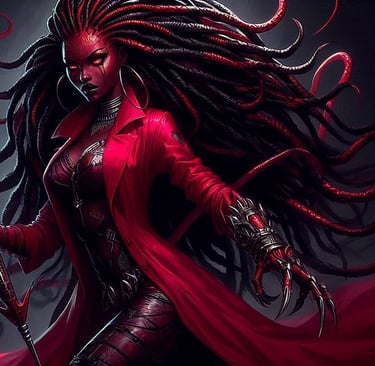 Azazella's Bloodlash unfurled like a ribbon of liquid night, each movement leaving trails of crimson energy that hung in the air like battle banners. The weapon pulsed in rhythm with her heartbeat, an extension of her will made manifest through Astarte's dark blessing.