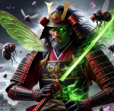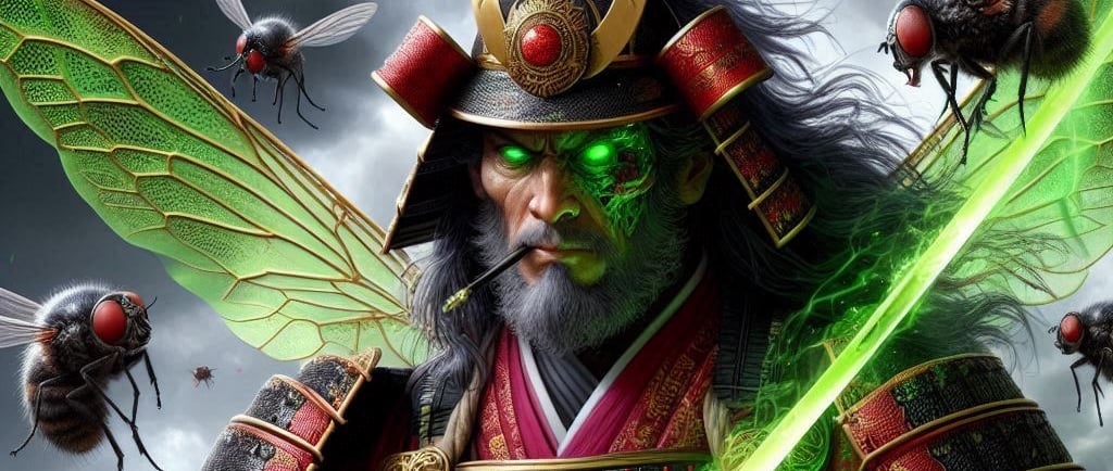 Beelzebub's katana withdrew from Mammon's throat, but the threat remained - a promissory note of violence, payable on demand. The Imperial Shogun stepped back, dissolving into a swarm that scattered to the winds, his message delivered with brutal efficiency.