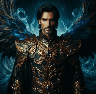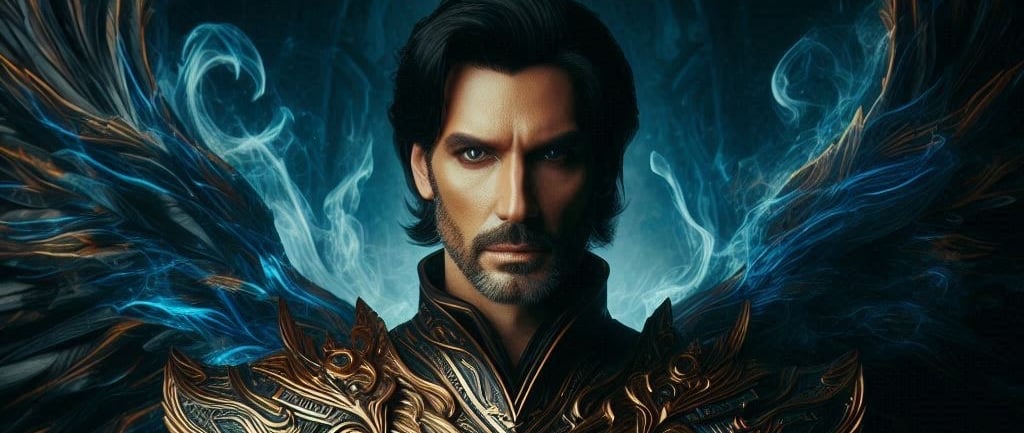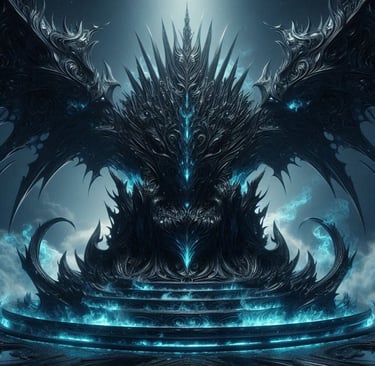 The air crackled as Lucifer materialized on the obsidian throne. Blue flames wreathed his form, casting stark shadows across features carved from divine defiance. His presence demanded attention—a force that drew every eye, every thought, every breath toward him like a singularity of power.