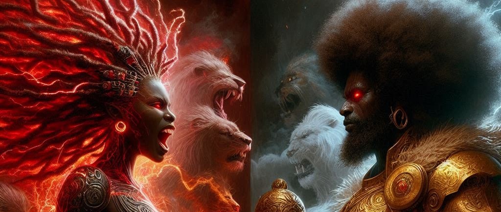 Lilith moved first, a blur of motion against the backdrop of war. Her fingers traced patterns in the air, leaving trails of ethereal energy that sparked with potential. Marbas watched, his movements deliberately slow, yet his eyes tracked her with predatory focus.
