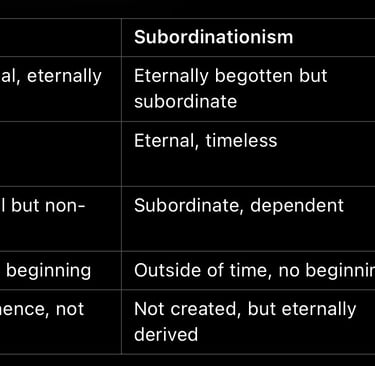 Where I diverge from Subordinationism is on the issue of eternal generation. Subordinationism maintains that the Son is eternally begotten by the Father, which is a cornerstone of its doctrine. However, I find this concept logically untenable because it fails to address the inherent contingency of the act of begetting.
